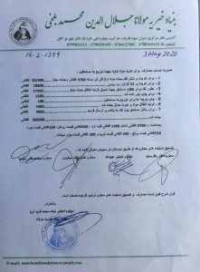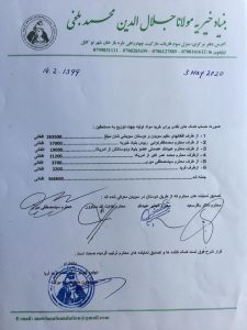 چندی قبل درکل مبلغ بیشتر از هفتاد هزار کرون از طرف افغانهای سویدن جمع شده بود که ازجمله مبلغ 37460 کرون (معادل 263500 افغانی ) به بنیاد خیریه مولانی بلخی در کابل ارسال شد و با کمک های از افراد دیگر مجموع پول مبلغ 366600 شد . این کمک ها که مجموعا مبلغ 366600 میگردد و شامل شش قلم مواد ارتزاقی و یک بسته مواد طبی بود توسط آن بنیاد به 87 خانواده مستحق از نظر اقتصادی نخست شناسایی وبعد طی یک مراسم توزیع گردید. برای هر خانواده مستحق مواد زیر توزیع گردید: 1ـ 50 سیر آرد ؛ 2 ـ پنج لیتر روغن ؛ 3 ـ یک سیر برنج ؛ 4 ـ نیم سیر لوبیا ؛ 5 ـ یک کیلو چای سبز ؛ 6 ـ نیم سیر بوره 7 ـ یک بسته مواد طبی و برعلاوه برای 86 نفر بخاطرپرداخت کرایه خانه و برای یکنفر در پلخمری مبلغ 4000 کرون ارسال شده است که ویدیو و اسناد آن در زیر نشر میگردد.