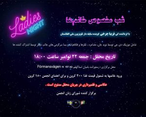 شورای زنان انجمن افغانها مقیم استکهلم افتخار داردکه بازهم مثل سالهای گذشته برگزار کننده محفل (شب خانمها) میباشد.