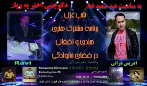 فرآموش نکنید شب غزل یکشنبه دهم جولای ساعت (15.00) الی22.00