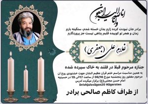 فاتحه مردانه و زنانه درهمان روز از ساعت 13,30 الی 15,00بعداز ظهر در مسجد روگسوید شهر استاکهلم گرفته میشود. -