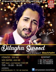 .قرار است روز شنبه مورخ 23 مارچ از نوروز باستانی با کنسرت دل آغا سرود در شهر استاکهولم تجلیل بعمل آید